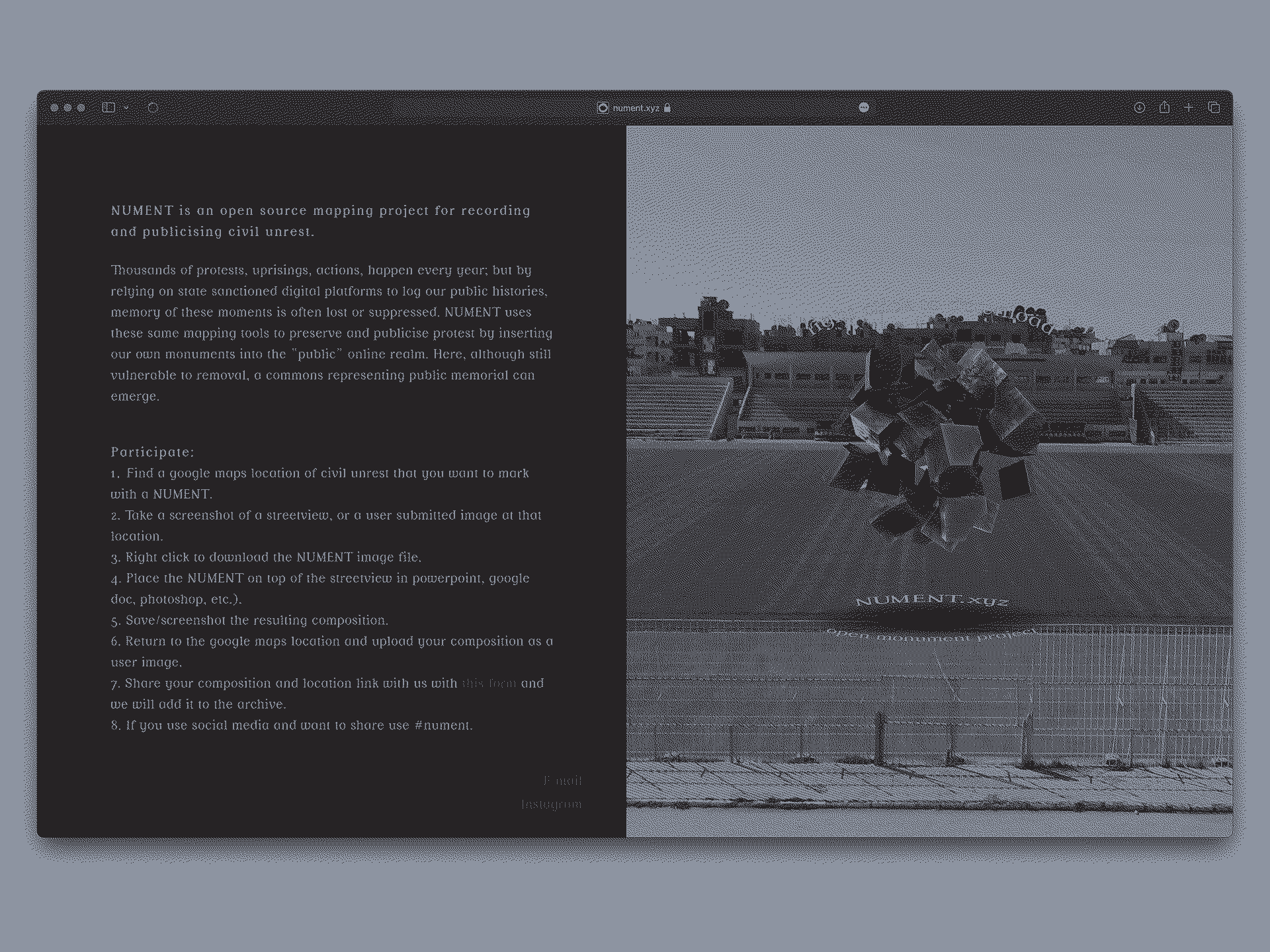 To plot your own monument to a protest visit nument.xyz.