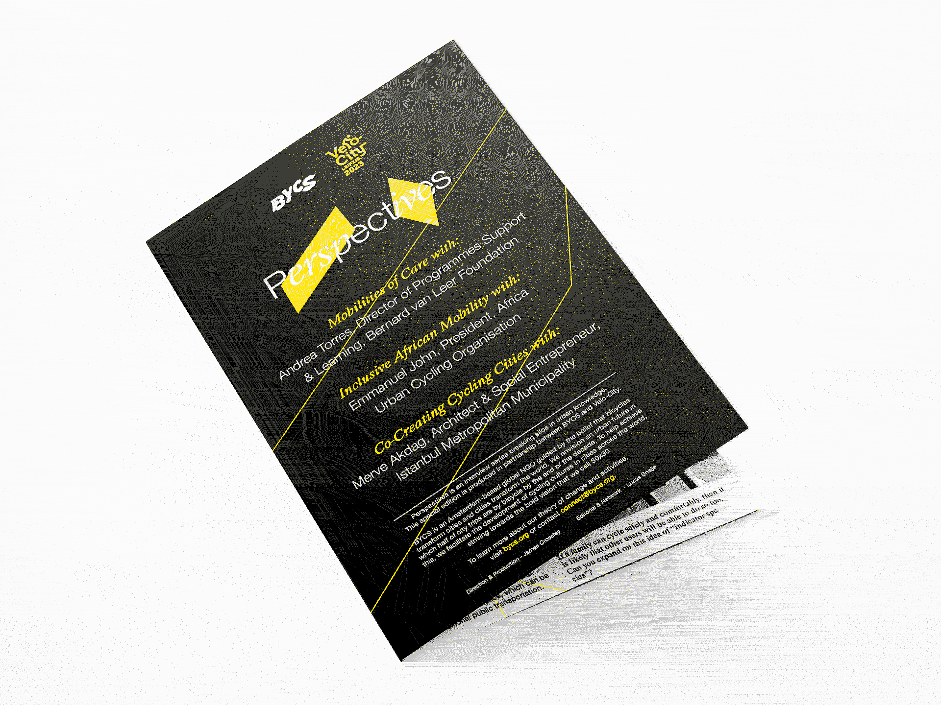 In 2023 BYCS partnered with Velo-city Conference to bring a special edition of Perspectives to print for all attendees. This issue covered “Global Cycling Cultures” with interviewees from Nigeria, Chile and Turkey; and was printed as an A1 foldout poster to enable our message to be taken home and displayed proudly.