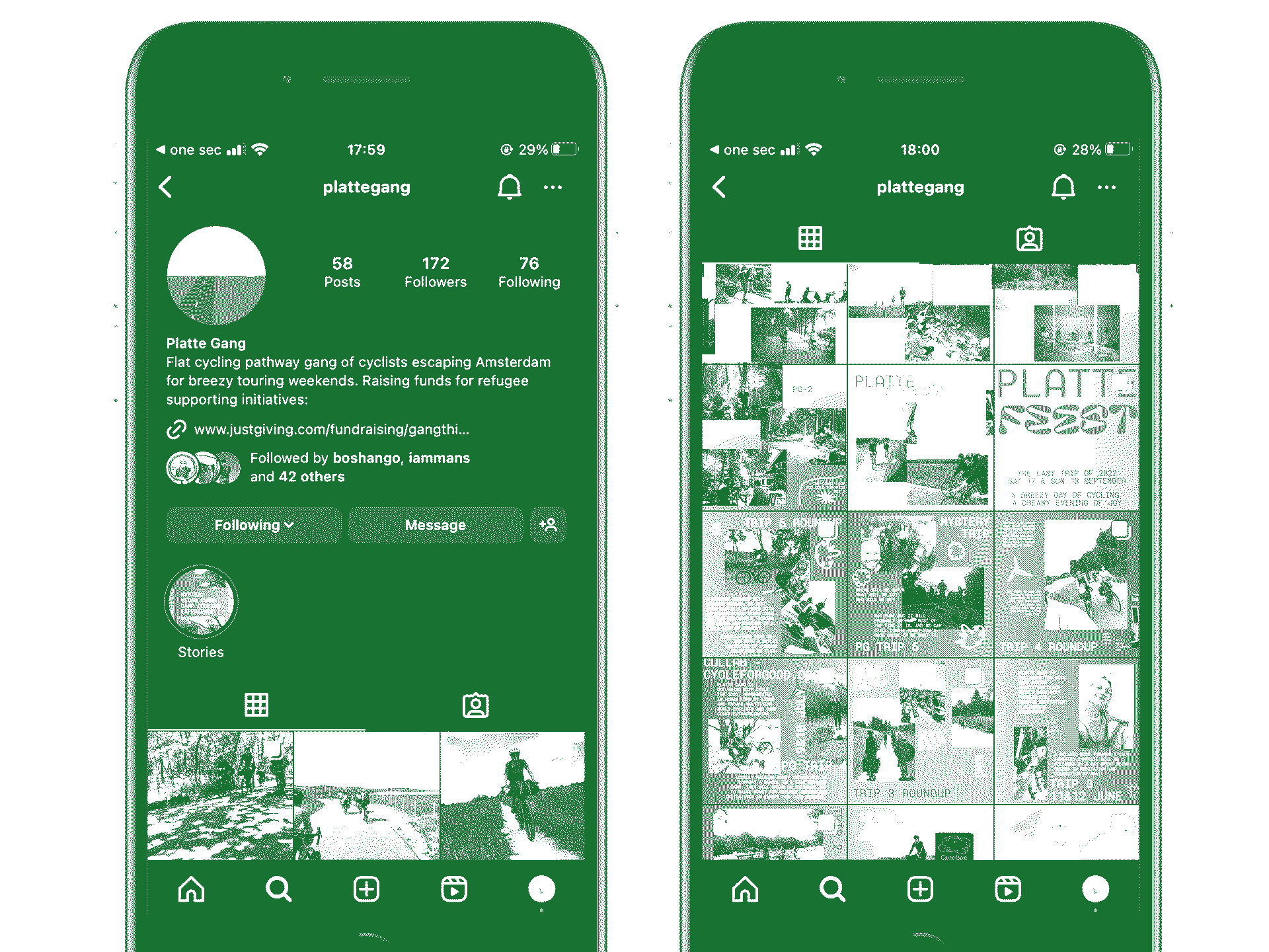 Platte Gang started as series of breezy cycle and camping weekends out of Amsterdam, once a month throughout summer since 2019. It has evolved into an active community, fundraising, and research project.
