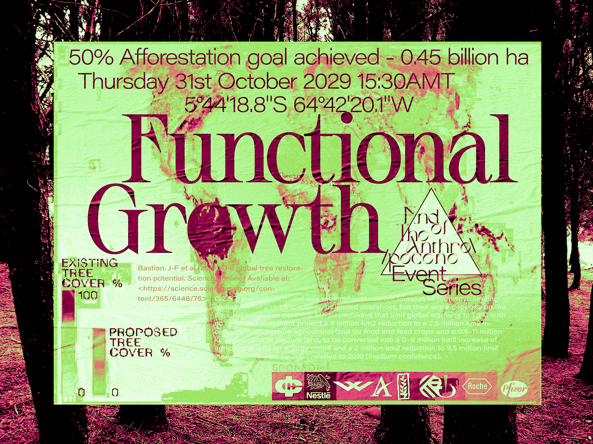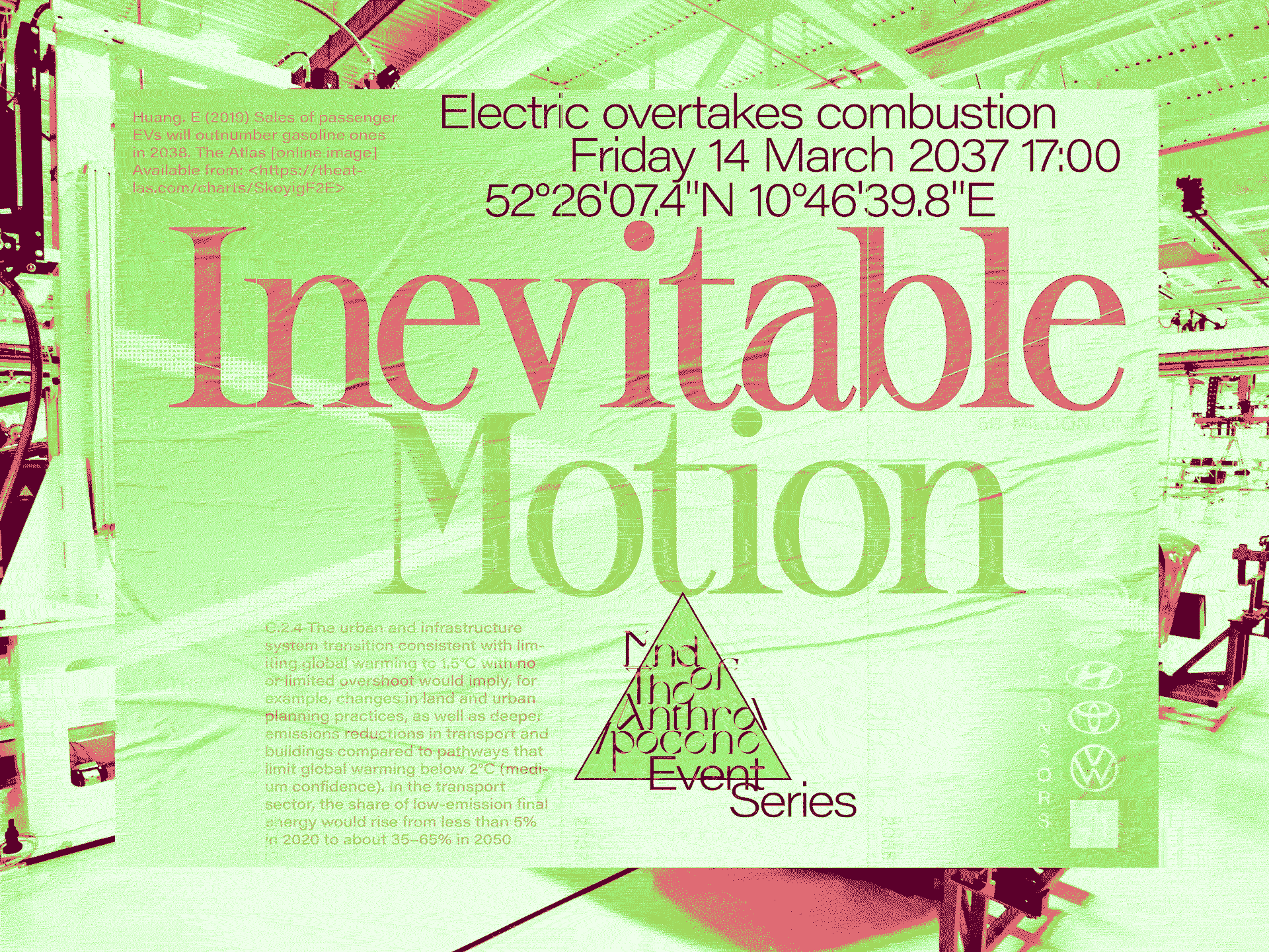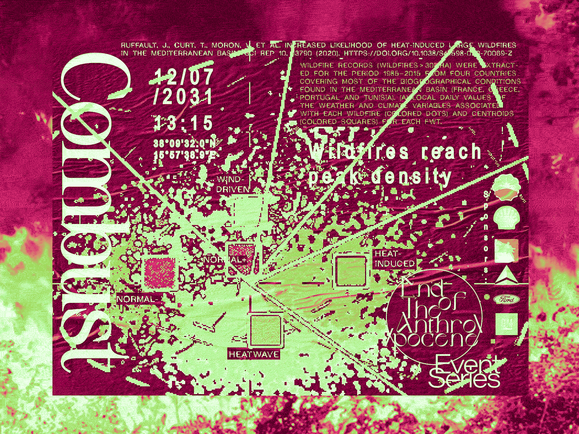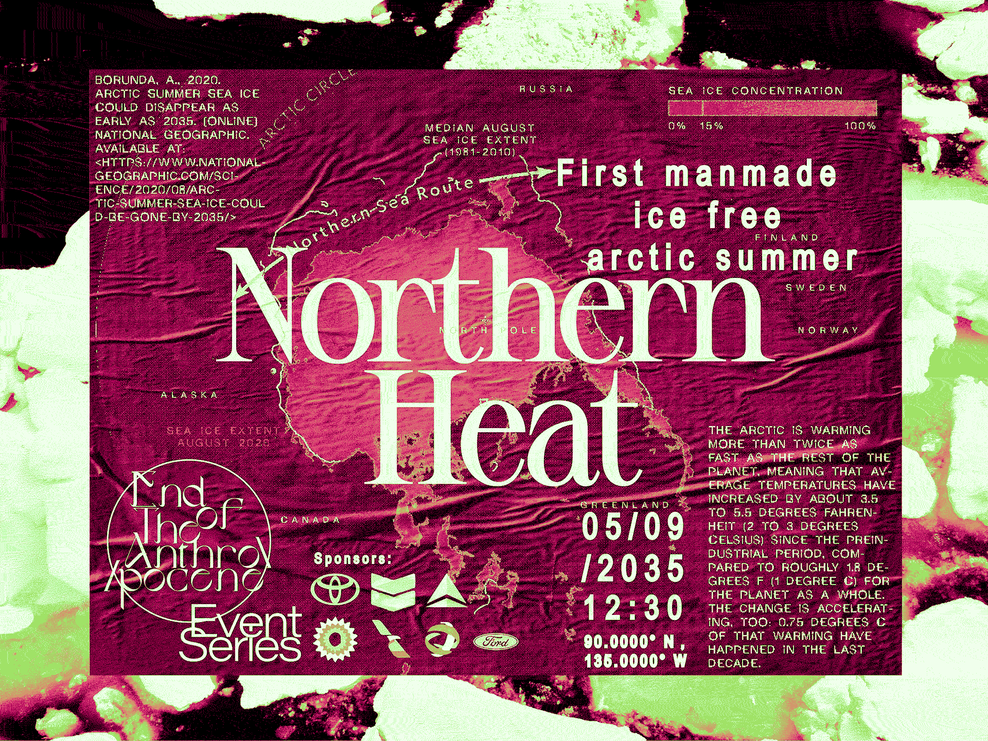 The ENDOTA series of parties recognises key events on the way to mitigation, or total destruction. Defined by scientific predictions taken from current studies, the dates, times, and locations continually shift as we either accelerate climate change, or manage to combat its effects.