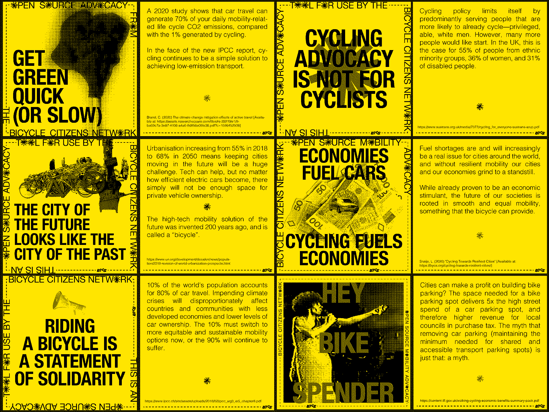 As a digital campaign it reimagines cycling activist messaging to appeal to a wide urban audience, pairing an intersectional approach to issues that cycling can contribute towards with a mischievous tone. These open source advocacy tools are freely available for anyone to help spread the message of human-centric cities.