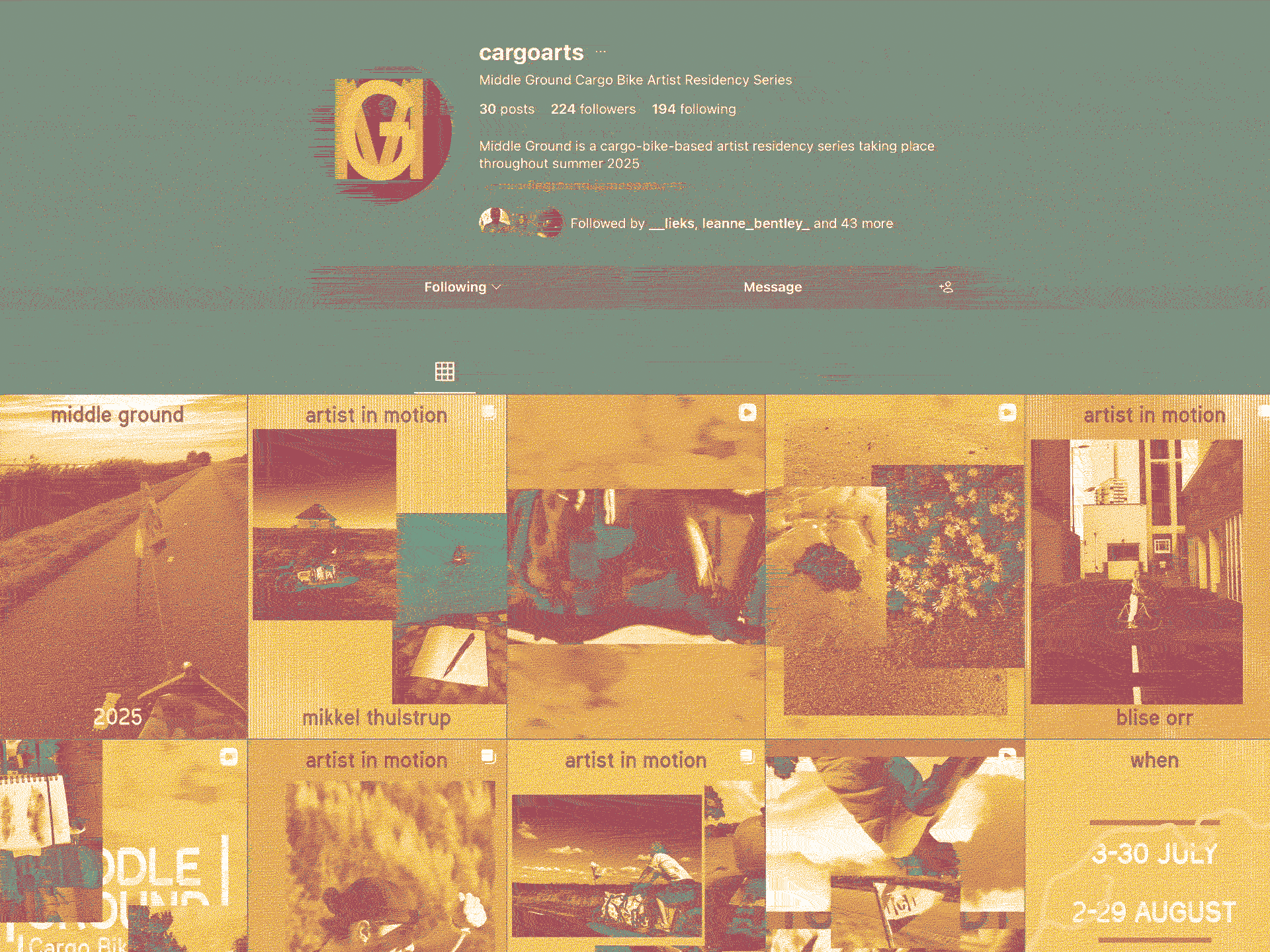 He holds floating creative direction, strategy and design positions in several initiatives including BYCS, an Amsterdam based global NGO that supports community-led cycling change, Border Cheque anti-border journalism, and Glinted Records. He is also a founding member of CAR, Cycling Art Research collective.